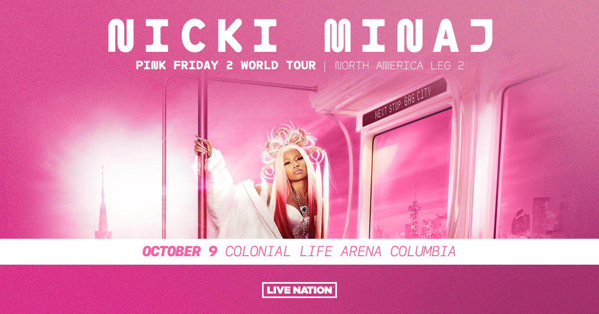 Columbia, SC (May 29, 2024) — Due to phenomenal fan demand, the one and only Queen of Hip-Hop Nicki Minaj announced the second leg of her record breaking and largest worldwide outing to date, The Pink Friday 2 World Tour. The newly added North America leg will see Minaj hit a total of 22 additional shows, including a stop at Colonial Life Arena in Columbia, SC, on October 9, 2024.