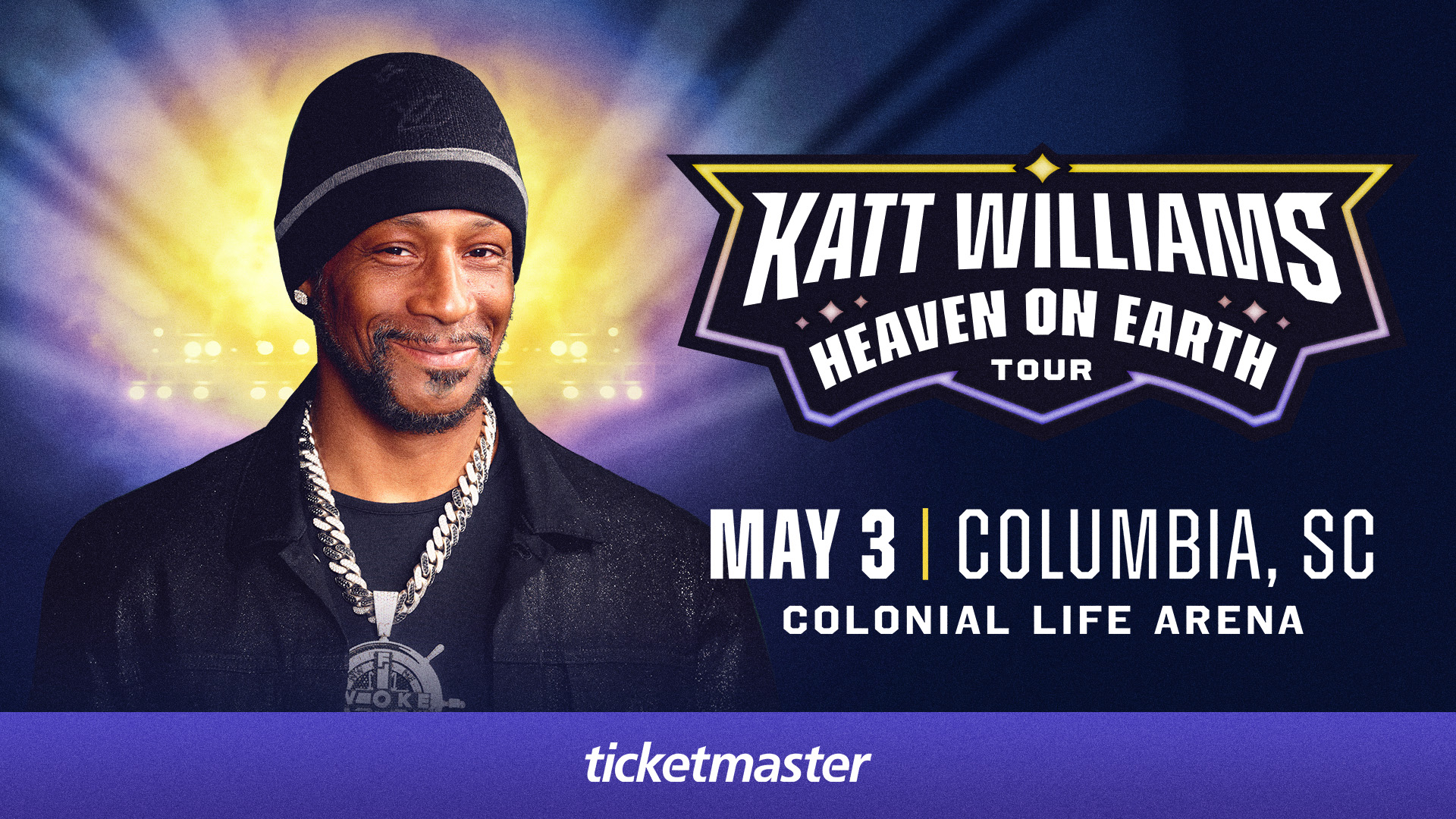 COLUMBIA, S.C. (May 31, 2024) – On the heels of his explosive Netflix comedy special, WOKE FOKE, critically acclaimed comedian Katt Williams announces the HEAVEN ON EARTH TOUR. Produced by North American Entertainment Group, the upcoming tour with new material kicks off in January 2025, making stops across the U.S., including Colonial Life Arena on May 3, 2025.